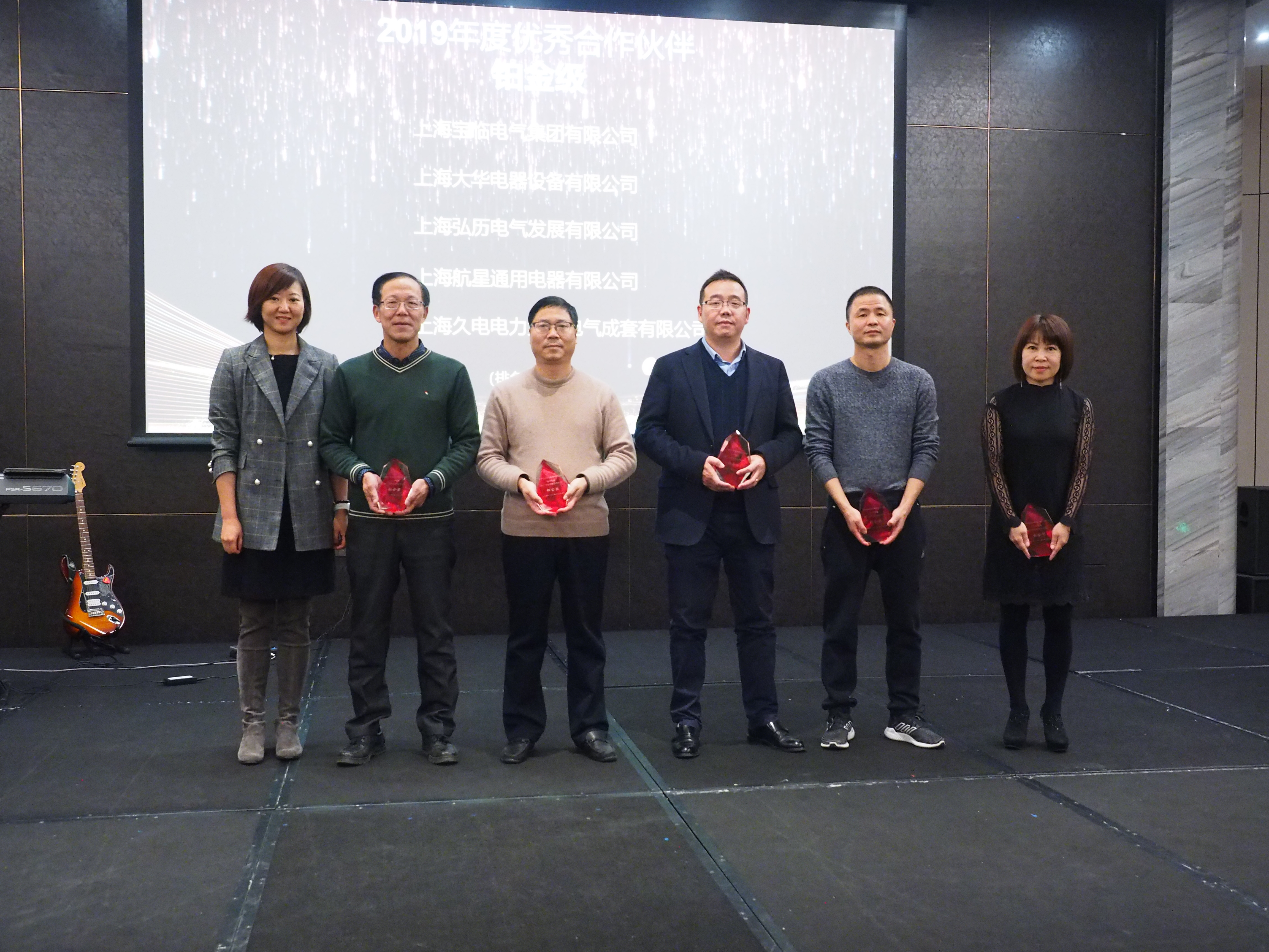 上海弘歷電氣發(fā)展有限公司在2019年12月13日施耐德電氣(中國)有限公司舉行的“上海大區(qū)盤廠業(yè)務(wù)可持續(xù)發(fā)展大會”上,榮獲“施耐德2019年度優(yōu)秀合作伙伴鉑金獎”。王鈞總經(jīng)理及王積平博士參與大會,并由王鈞總經(jīng)理代表公司領(lǐng)取獎杯。